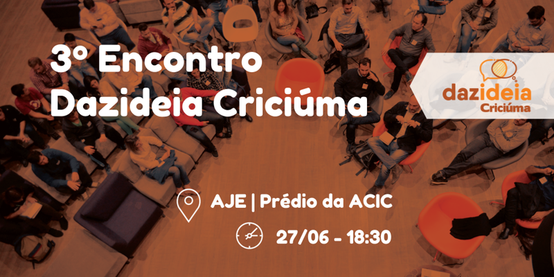 O projeto Dazideia, que promove encontros para empreendedores apresentarem seus projetos e receber feedback dos participantes, chega à terceira edição em Criciúma, no sul do Estado, no dia 27 de junho. O encontro acontece na Associação dos Jovens Empresários (AJE), no prédio da Associação Comercial e Industrial, a partir das 18h30.