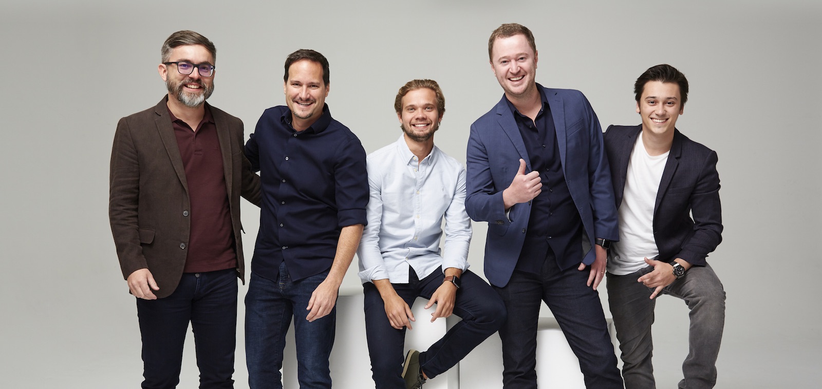 Na foto, os sócios Rafael Assunção (COO), Rodrigo Griesi (CFO), Gustavo do Valle (CEO e cofundador), Daniel Smolenaars (CTO) e Paulo Orione (CGO e cofundador). / Divulgação Decora Brasil