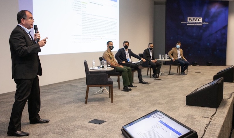 A inteligência militar chama isso de “guerra híbrida”: “trata-se de um ataque cinético (bombardeio) contra alvos que praticavam ciberataques. Mas os cinéticos não tem o mesmo alcance dos cibernéticos”, comenta Marcelo Ferraz dos Reis, subchefe do Centro de Defesa Cibernética do Exército Brasileiro, em painel sobre Cibersegurança realizado na Federação das Indústrias de Santa Catarina nesta quinta (23) e promovido pela Câmara de Smart Cities e o Condefesa da FIESC, com apoio da Vertical de Cidades Inteligentes da Associação Catarinense de Tecnologia (ACATE), em Florianópolis.