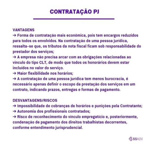 - a contratação via PJ não é ilegal, mas sim a forma como se dá a relação de trabalho;
