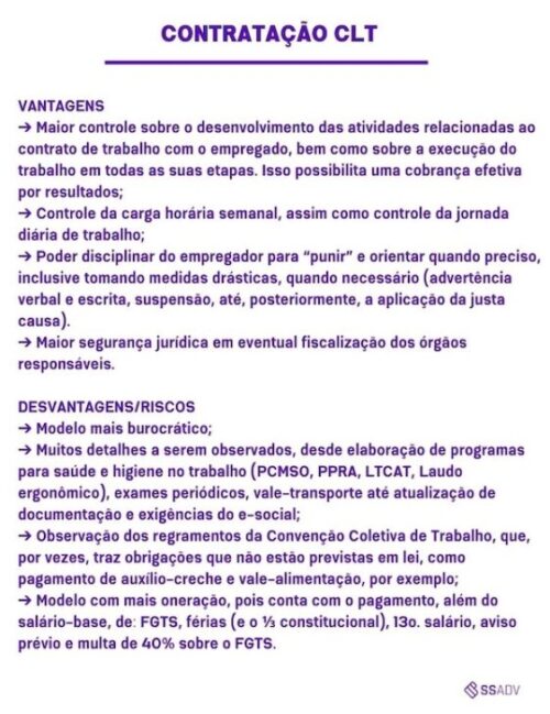 O vínculo PJ, portanto, não é uma alternativa ao vínculo CLT, pois tem características e aplicações distintas.